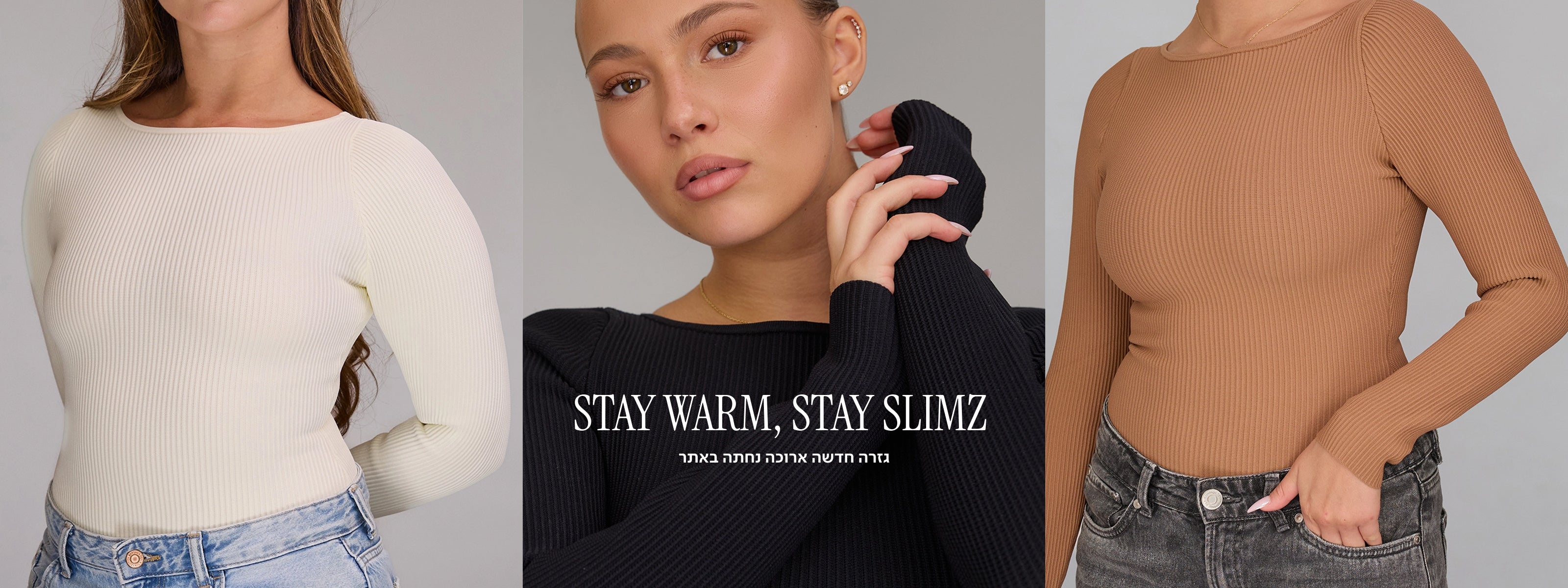 הבגדים של SLIMZ מיוצרים מבד ייחודי וחדשני המעניק פתרון לכל סוג מבנה גוף, ויגרום לכל אחת מכן להרגיש אסופה ובטוחה בעצמה, ללא התפשרות על נוחות או אלגנטיות. את הפריטים שלנו תוכלי לשלב עם כל לוק ובכל סיטואציה.