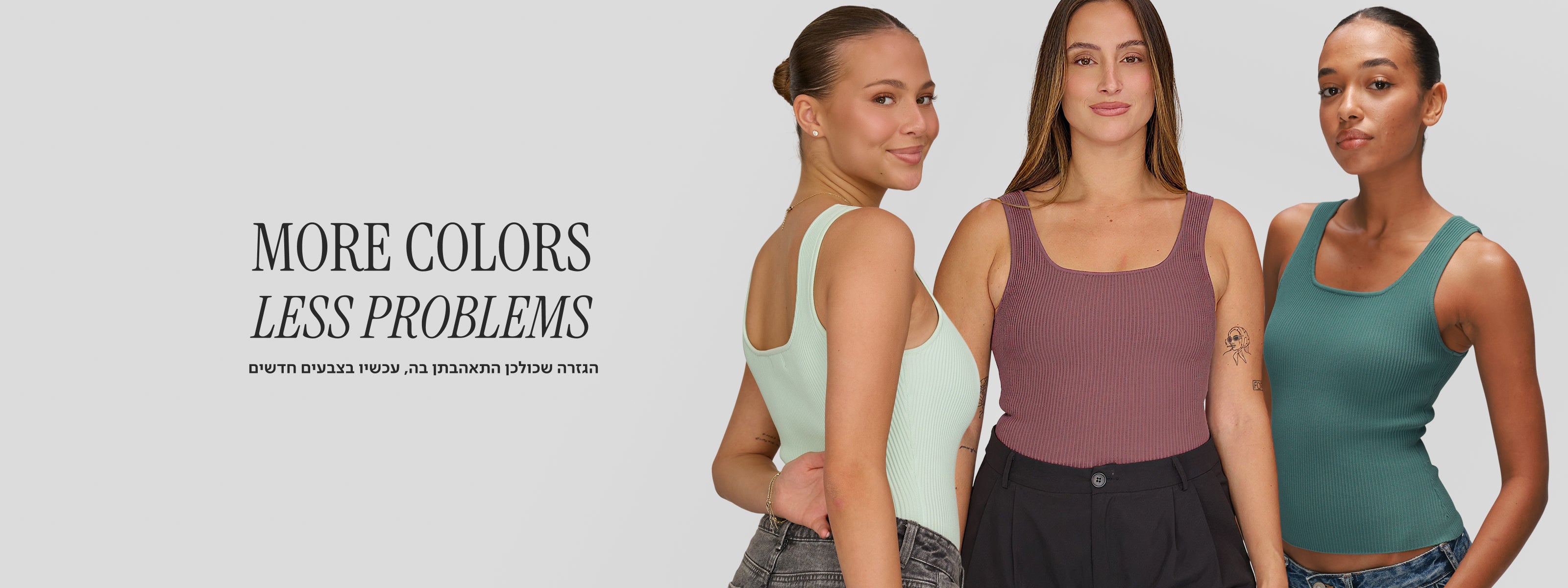 הבגדים שלנו נוצרו מבד חדשני שפותח במיוחד כדי לעבוד בשבילך – מחטבים, תומכים, מעצבים וקלאסיים, כדי שתמיד תרגישי בשיא שלך.