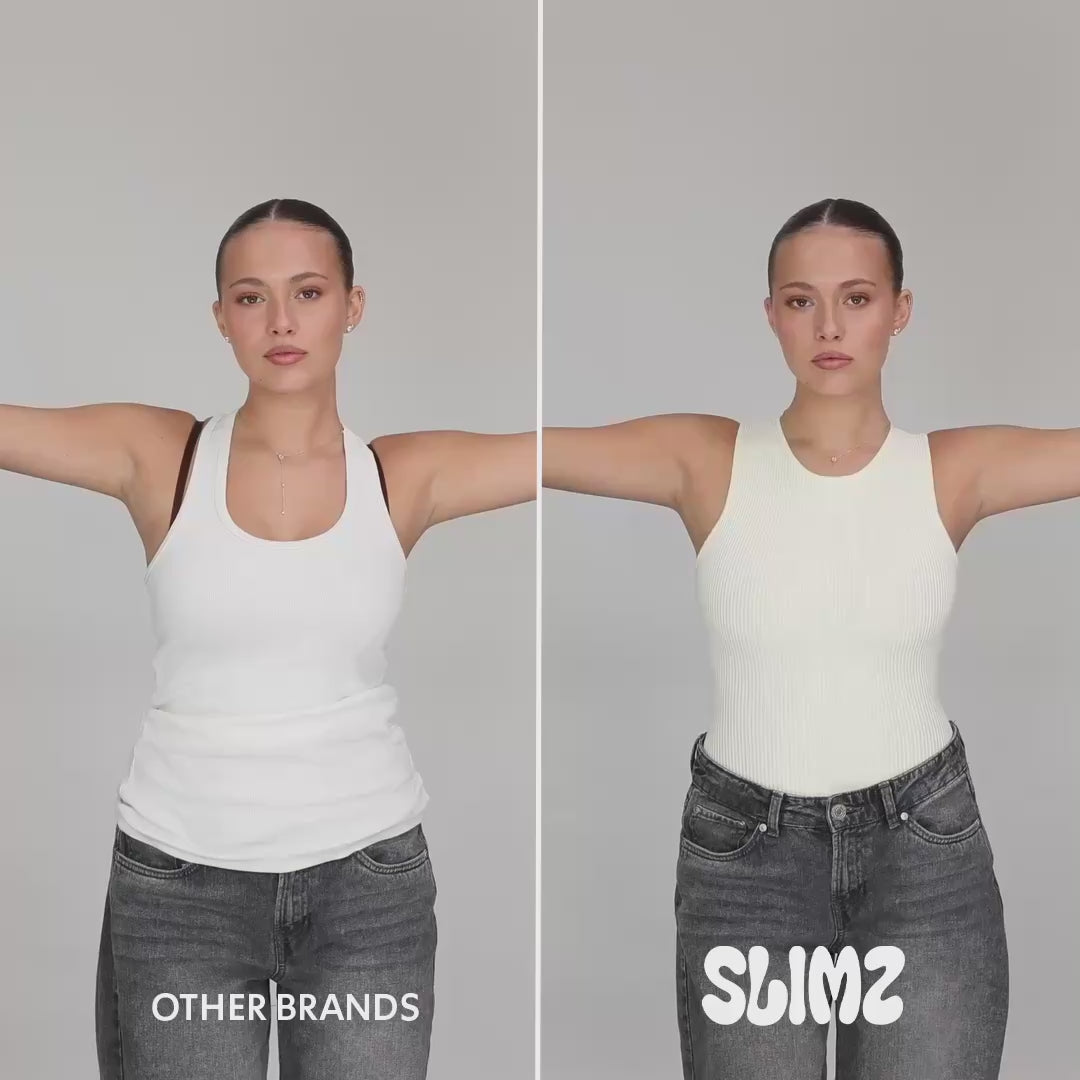 מיוצרת מהבד החדשני של SLIMZ, הגופייה מחטבת ומעצבת את הגוף בטבעיות. היא מספקת תמיכה במקומות הנכונים ומעניקה מראה קלאסי ובלתי מתאמץ - בלי צורך בחזייה, גם לחזה גדול!